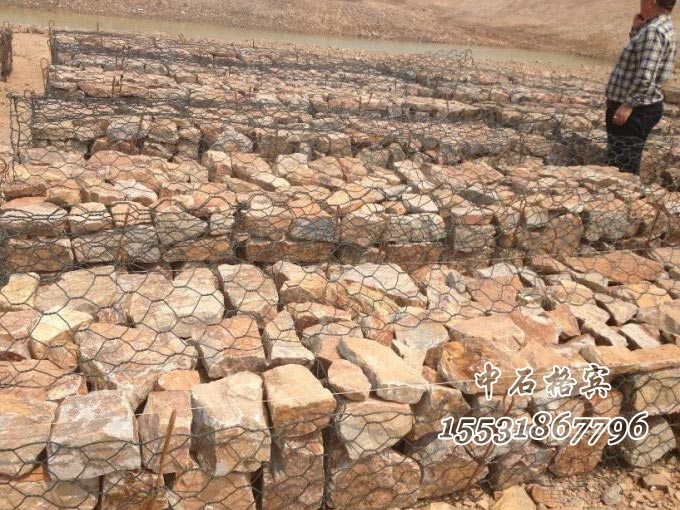 格賓網(wǎng)墊填充料塊石粒徑應(yīng)控制在6~15cm的占90%以上,其余10%為級配好的碎石。